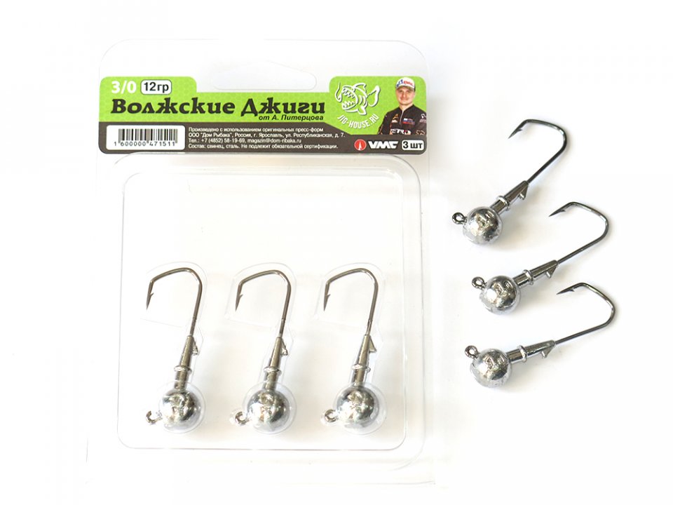 Джиг-головка ВОЛЖСКИЕ ДЖИГИ от Питерцова VMC №6/0 60гр. 3шт.(Россия)