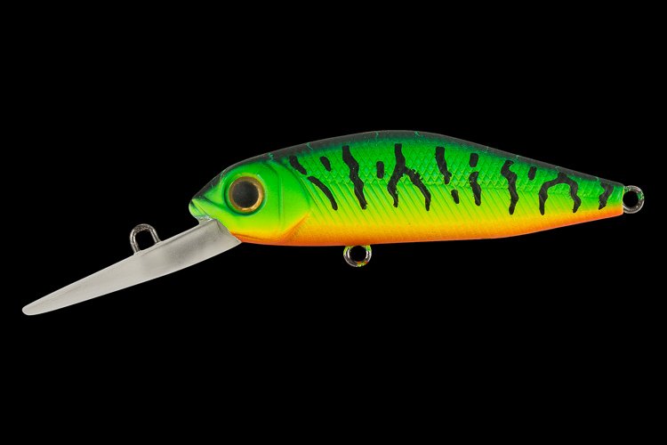 Поверхность тела REBUS 55F имеет две фактуры. Верхняя часть до боковой линии выполнена в виде ромбовидных насечек, а нижняя – оформлена косыми насечками. Крупная для такого размера воблера лопасть ( 25 мм в длину и 15 мм в самой широкой части) позволяет нам отнести приманку к категории диповых ( заглубляющихся). Вклеенные 3D глаза и головная часть воблера в виде реалистичной головы рыбки завершают целостность всего исполнения приманки. REBUS 55F оснащен двумя тройниками VMC BN и качественными заводными кольцами. Имеется система баланса (балансировочный грузик смещен к головной части), и система дальнего заброса ( в виде перекатывающегося в хвост приманки при забросе шара). Этот же шар при анимации создает шумовое сопровождение.