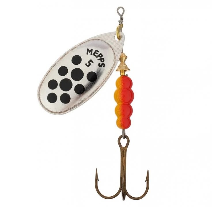 - Блесна вращ. MEPPS Aglia Decoree №5 цв.черн.точки/серебро(Франция)