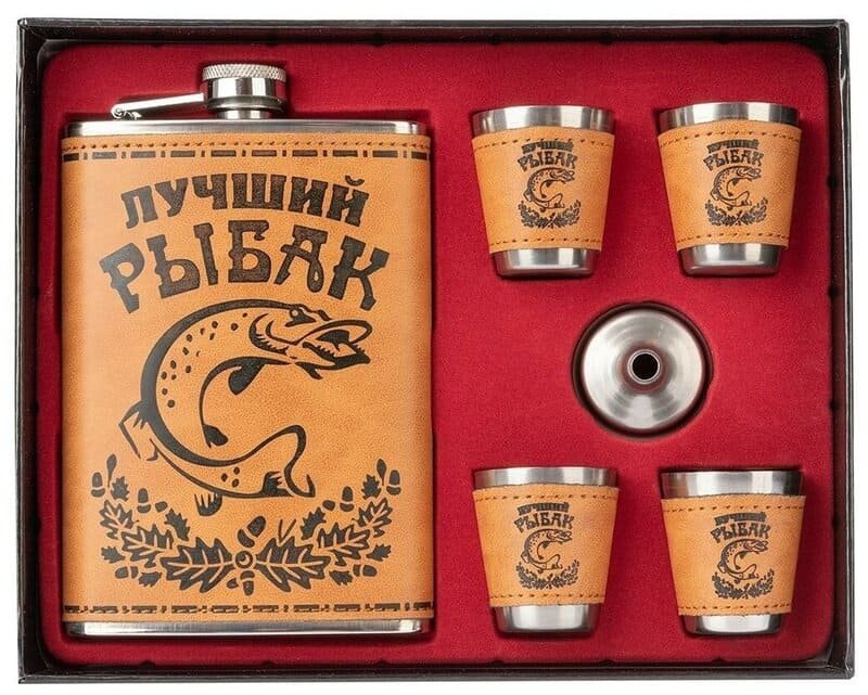 - Набор HELIOS "Лучший рыбак" фляжка 270мл+4стопки+воронка арт.HS-GT-TZ95(Китай)