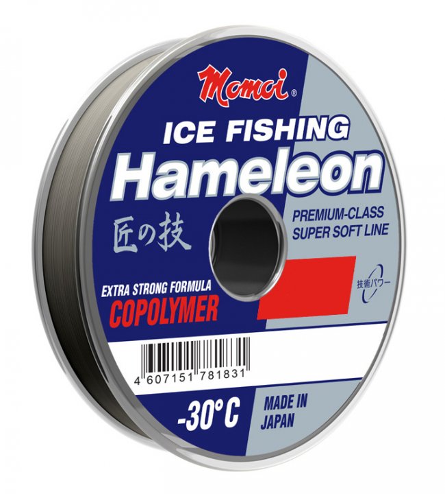 Momoi Hameleon Ice Fishing - высокопрочная леска из мультиполимера c нанесённым антиобмерзающим покрытием. Серебристая леска незаметна в прозрачной воде. Благодаря зимнему покрытию Neo Ice Coating -30C, сохраняет свою первоначальную мягкость и гибкость при низких температурах.
