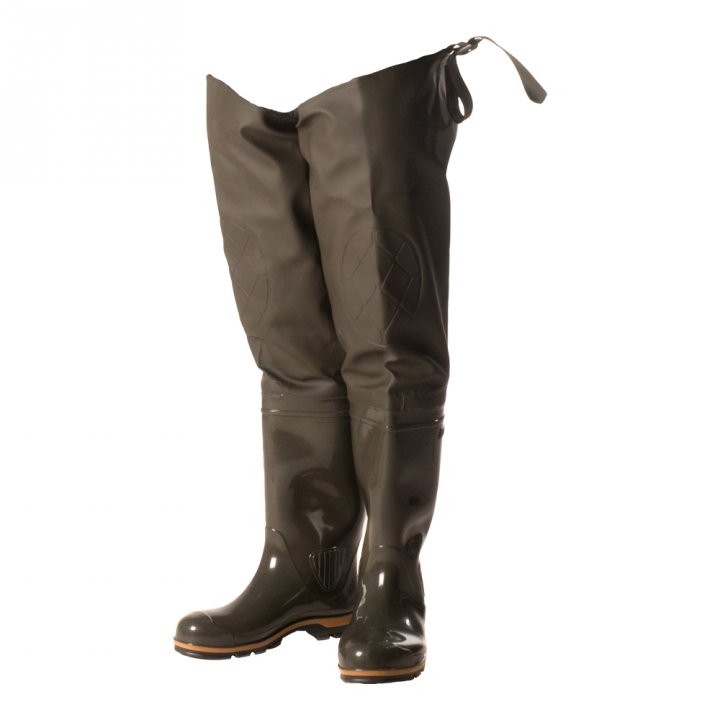 Классическая модель рыбацких сапог. Плотная рифленая подошва. Текстильный верх из водонепроницаемой ПВХ-ткани (винитол) крепится к базовому сапогу на современном итальянском оборудовании при помощи сварки током высокой частоты. 100% водонепроницаемость. Дополнительно применяется технология двойного шва, которая придает обуви еще большую прочность, износостойкость и герметичность.