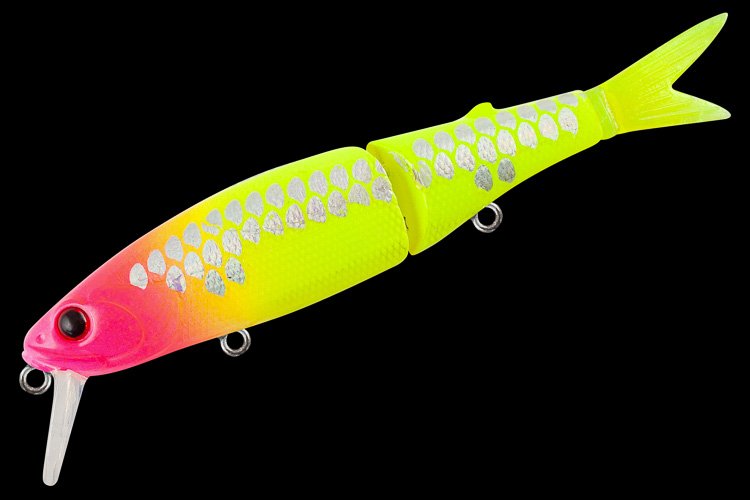 Двухсоставной воблер класса минноу для ловли щуки и окуня на мелководье, над подводной растительностью, вдоль стенок камыша, в окнах и прогалах среди кувшинок.